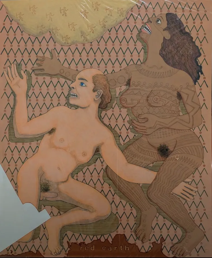 Bob Haozous initiates the thought-provoking discussion with a drawing inspired by Samson and Delilah in the Bible, symbolizing the tension between Westernization and Indigenous identity. He emphasizes our shared humanity and the need to rebuild a relationship with nature, exemplifying the idea of “tribes” as a reflection of the natural world. Roxanne Swentzell echoed this concept, reinforcing unity and her work in environmental restoration through the Indigenous Permaculture Institute as a path to reconnecting with the land and our human roots.