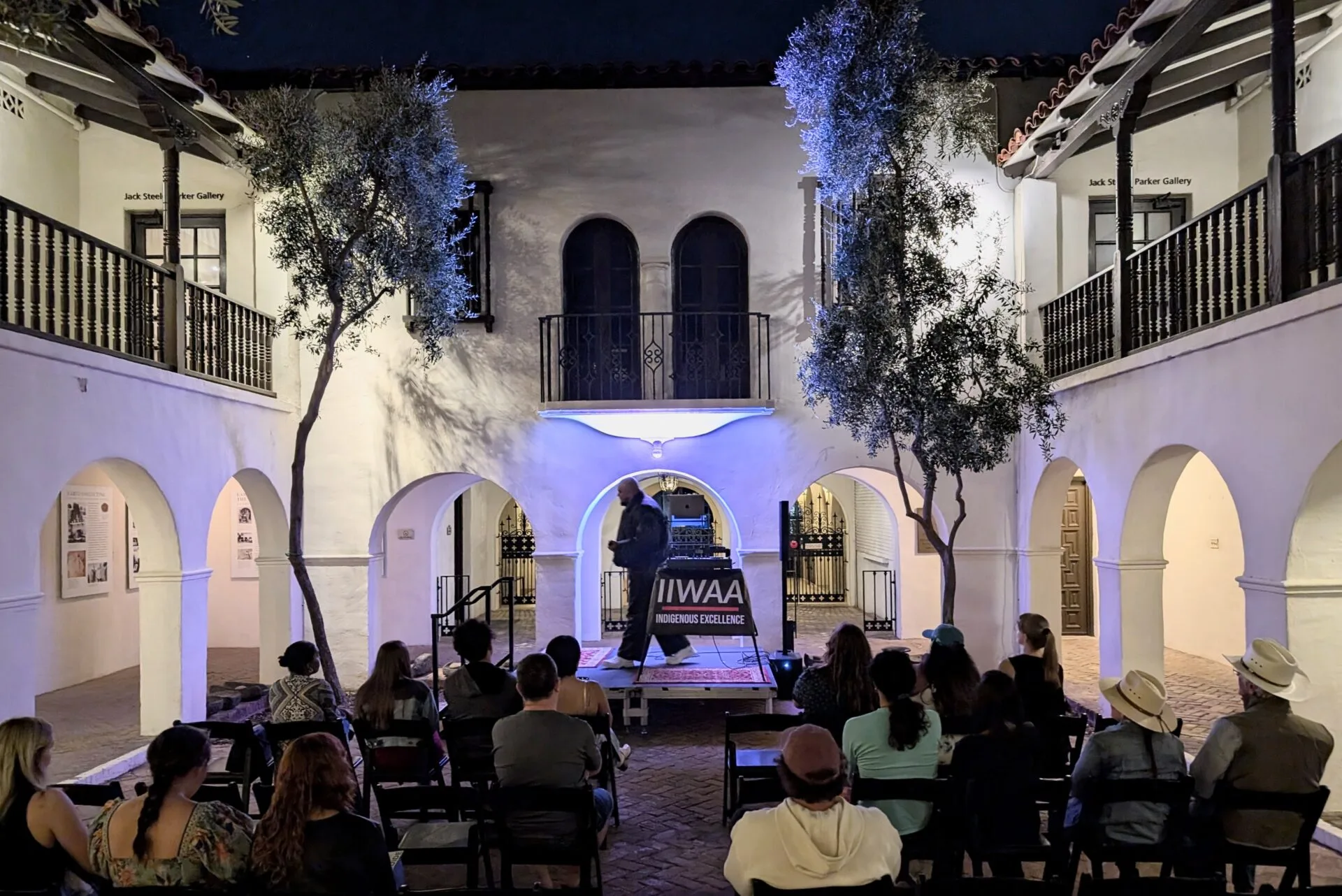 Public Engagement Manager Mike Webb interviews musician and educator, IIWAA (Piipaash/Quechan) about his creative background at IAIA (Institute of American Indian Arts).